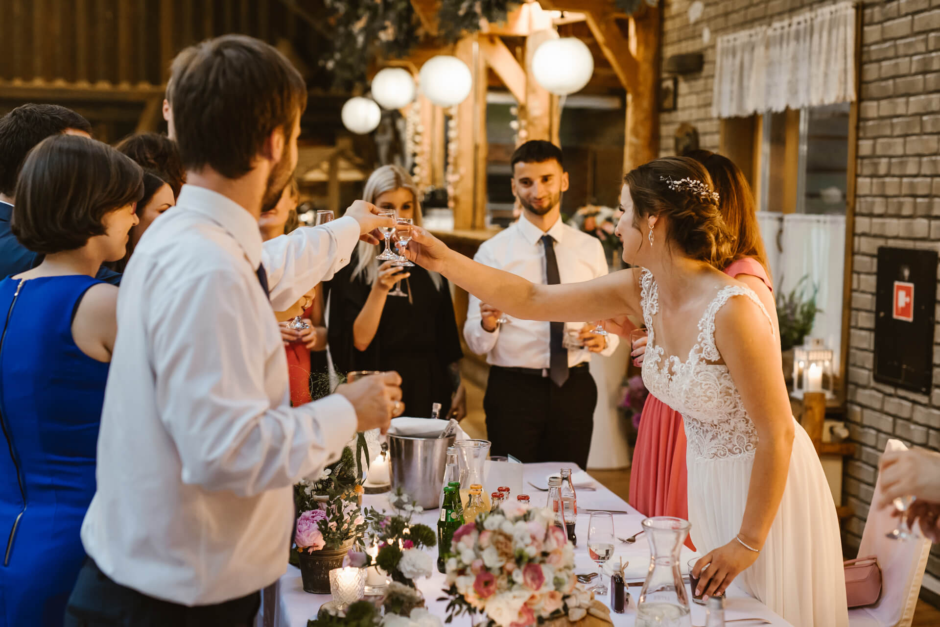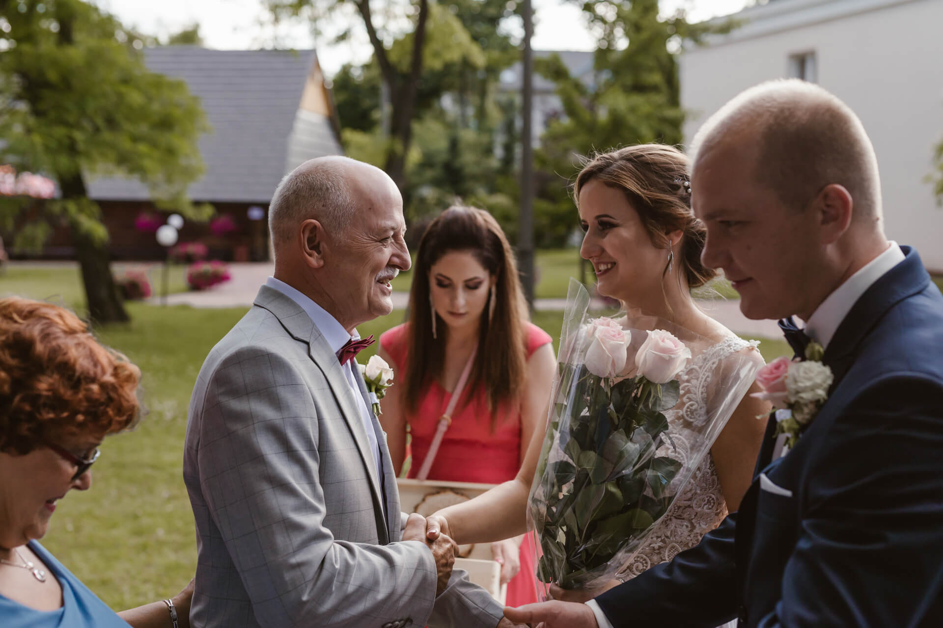 Przygotowania i błogławieństwo odbyło w domu Panny Młodej. Następnie udaliśmy się do Hotelu Boss, na terenie którego znajduje się również Stary Młyn, miejsce wesela Kasi i Piotrka. Ślub był bardzo krótki, ale w jego trakcie nie brakowało licznych wzruszeń, uśmiechów i ogólnej radości, którą emanowali Państwo Młodzi. Skrzypaczka zadbała o piękną oprawę muzyczną ceremonii, co spowodowało pojawienie się łez wzruszenia u niektórych gości. Na zakończenie ślubu. bliska osoba Pary Młodej zaśpiewała przepiękną piosenkę zespołu Pentatonix – Hallelujah. Uwielbiam ten utwór, czy to w trakcie ślubu czy oglądając Shreka. Wystrzał confetti, życzenia zebranych gości – i nadszedł czas, aby udać się na salę weselną.
